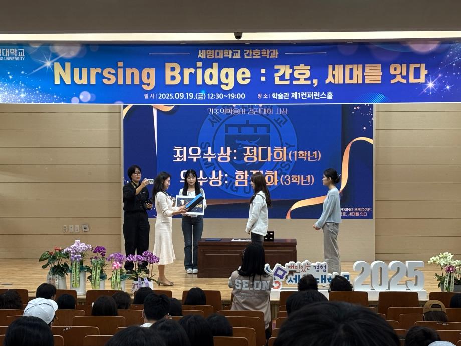 본문 시작 홈으로 학과특성화 사업 학과소개 교수소개 교육과정 학과소식 학과특성화 사업 커뮤니티 홈페이지가이드 2025년 2026년 2025년 2024년 2023년 2022년 2021년 2020년 2019년 2018년 2017년 2016년 2015년 2014년 2025년 페이스북 트위터 프린트 🎉 세명대학교 간호학과 30주년 기념행사 🎉 Nursing Bridge: 간호, 세대를 잇다 간호학과 560 2025-09-24 세명대학교 간호학과가 개설 30주년을 맞아, 지난 세월의 발자취를 돌아보고 미래 간호를 함께 그려보는 뜻깊은 시간을 가졌습니다. 이번 행사에는 권동현 총장님, 신경림 대한간호협회장님, 정승교 명예교수님을 비롯해, 수많은 졸업생과 내외빈 여러분이 함께해 자리를 빛내주셨습니다. 과거와 현재, 그리고 미래의 간호를 잇는 ‘Nursing Bridge’ 그 감동의 순간들을 공유드립니다. 목록 이전핵심간호술 졸업인증제 프로그램 다음 2025학년도 기초실습역량향상프로그램 (카데바 실습) 담당부서 : 간호학과 담당자 : - 연락처 : 043-649-1357 최종수정일 : 2024-10-26 만족도조사 만족도 조사 이 페이지에서 제공하는 정보에 대하여 만족하시나요? 매우만족 만족 보통 불만족 매우불만족